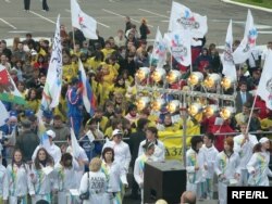 Менә ниһаять кичке җиде тулып сигезенчедә Як-42 очкычы республика җиренә утырды. Аның эченнән шат йөзле “Казан” дип язылган кызыл спорт киемнәреннән башкала мэры Илсур Метшин, Татарстанның яшьләр эшләре, спорт һәм туризм министры Марат Бариев , Русия студентларының спорт берлеге рәисе Олег Матыцин чыктылар. Алар артыннан Казаннан Брюссельгә кадәр йөгергән спортсменнар күренде. Казанга Универсиаданы алып кайтчуларны югары кәеф белән Миңтимер Шәймиев каршы алды. “Волга - волга”ның “Тала-тала” җырына селкенеп җылынган халык сәхнәгә Казанның җиңүе һәм бу җиңүгә өлеш керткән кешеләр турында әйтергә менгән Татарстан президентын шау-гөр килеп кабул итте. Җитәкчеләр бу чараның республика өчен мөһим вакыйга булуын, Универсиада кысаларында Казанның нык үзгәрәчәген, яңа үрләр яулыячагын әйттеләр.