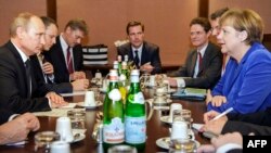 Меркель белән Путин Украина көнчыгышындагы хәлләр турында сөйләште. Песков сүзләренчә, ике җитәкченең Украинадагы низаг сәбәпләре турында карашлары ике төрле булып кала.