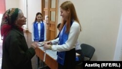 Елдагыча Рөстәм Миңнеханов мөслимә булган Гөлия ханым янына килеп сайлау бюллетенен ала. Азатлык Гөлия ханымнан Миңнехановның аны ни өчен үз иткәнен кызысынды. Ул безгә: "Бәлки, ике телне дә татарча яхшы белүемә бәйледер. Башкалар бер телле. Рөстәм Миңнеханов та, хатыны да татарча сөйләшләр. Мин биредә 6-7 ел эшлим", диде.